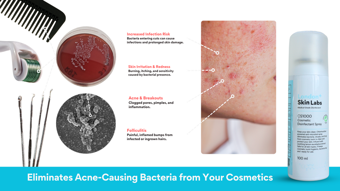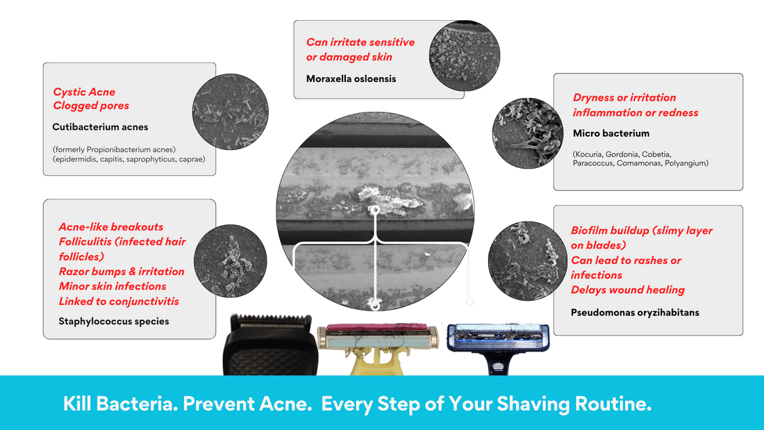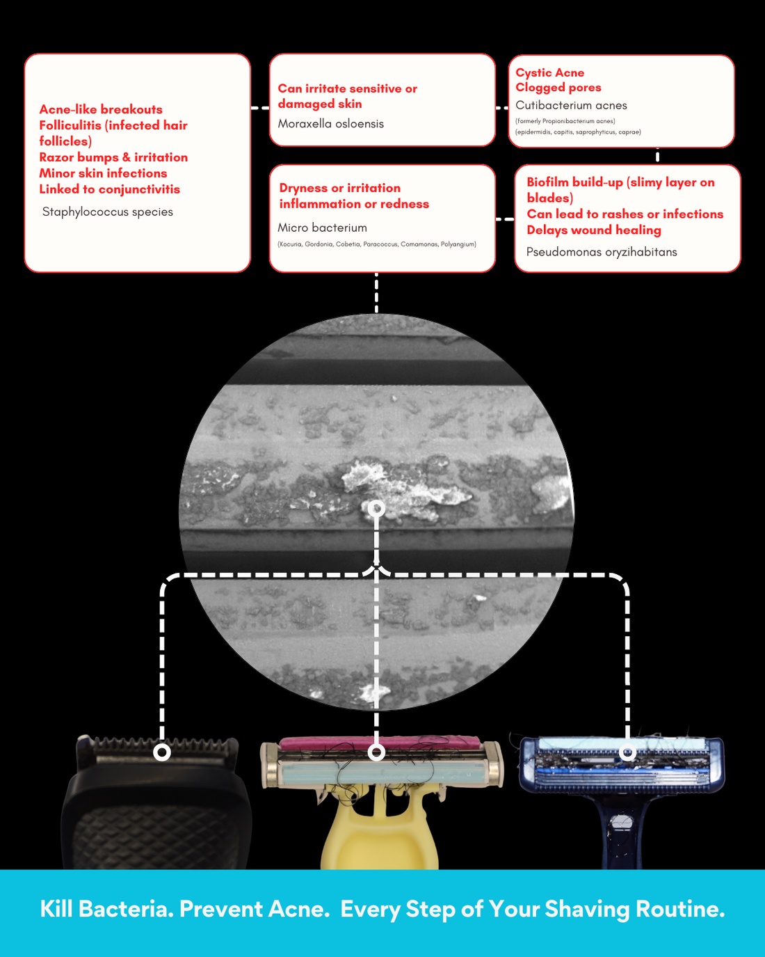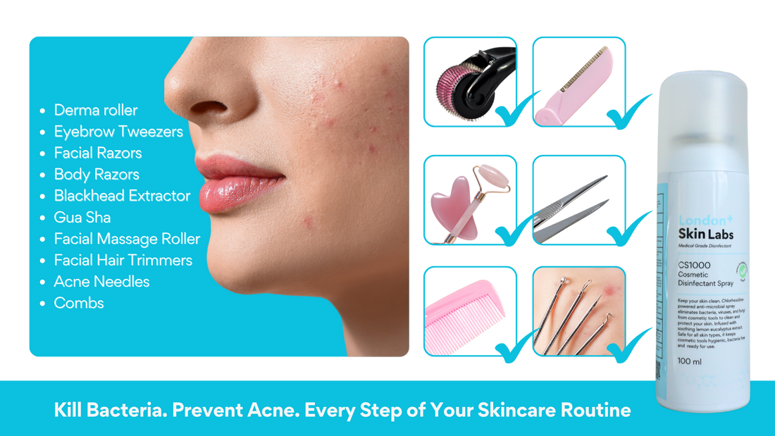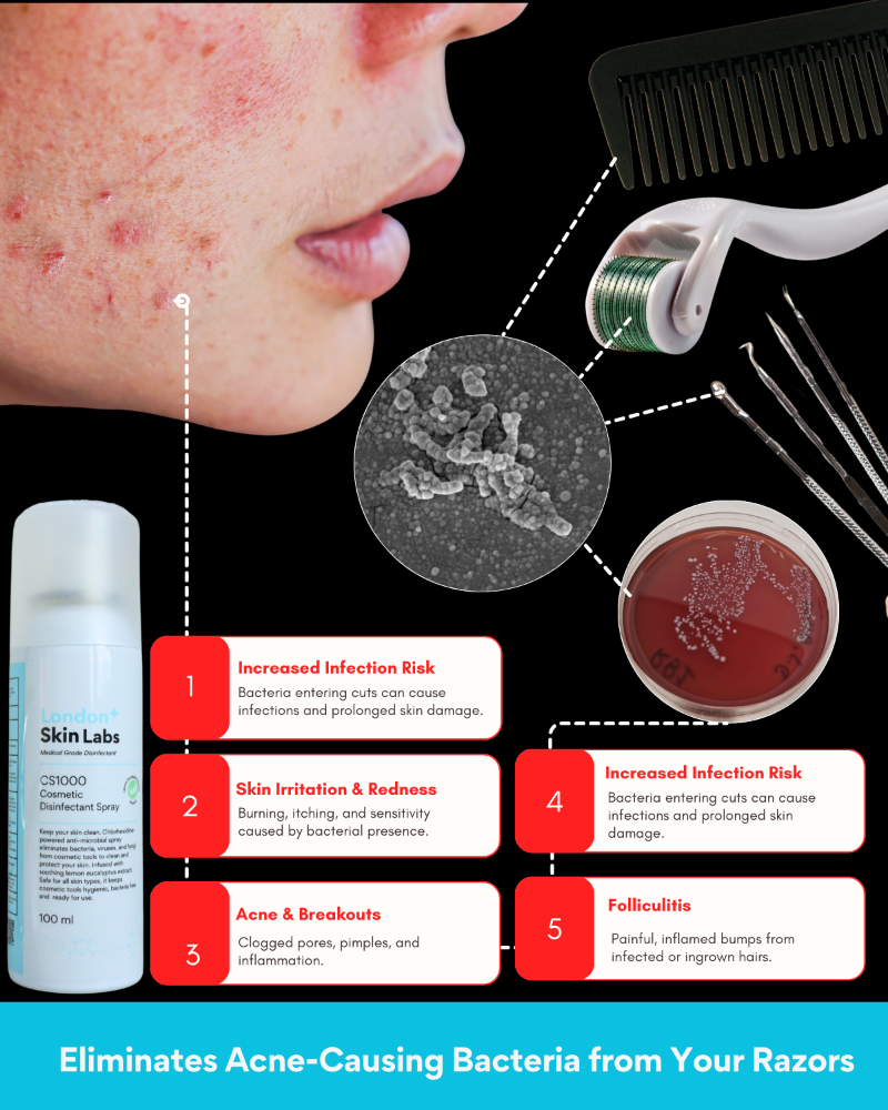 Our premium disinfectant sprays are specially made for razors, clippers, combs, and beauty tools. Powered by Medical grade Chlorhexidine, they kill 99.9% of bacteria, fungi, and viruses helping prevent acne breakouts, irritation, and infections. Whether you're shaving, styling, or grooming, make sure your tools stay as clean as your skin deserves.
